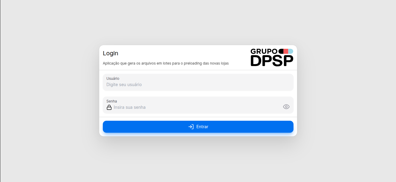 O sistema web do Grupo DPSP visa automatizar o processo de preloading de novas lojas que serão inauguradas.
