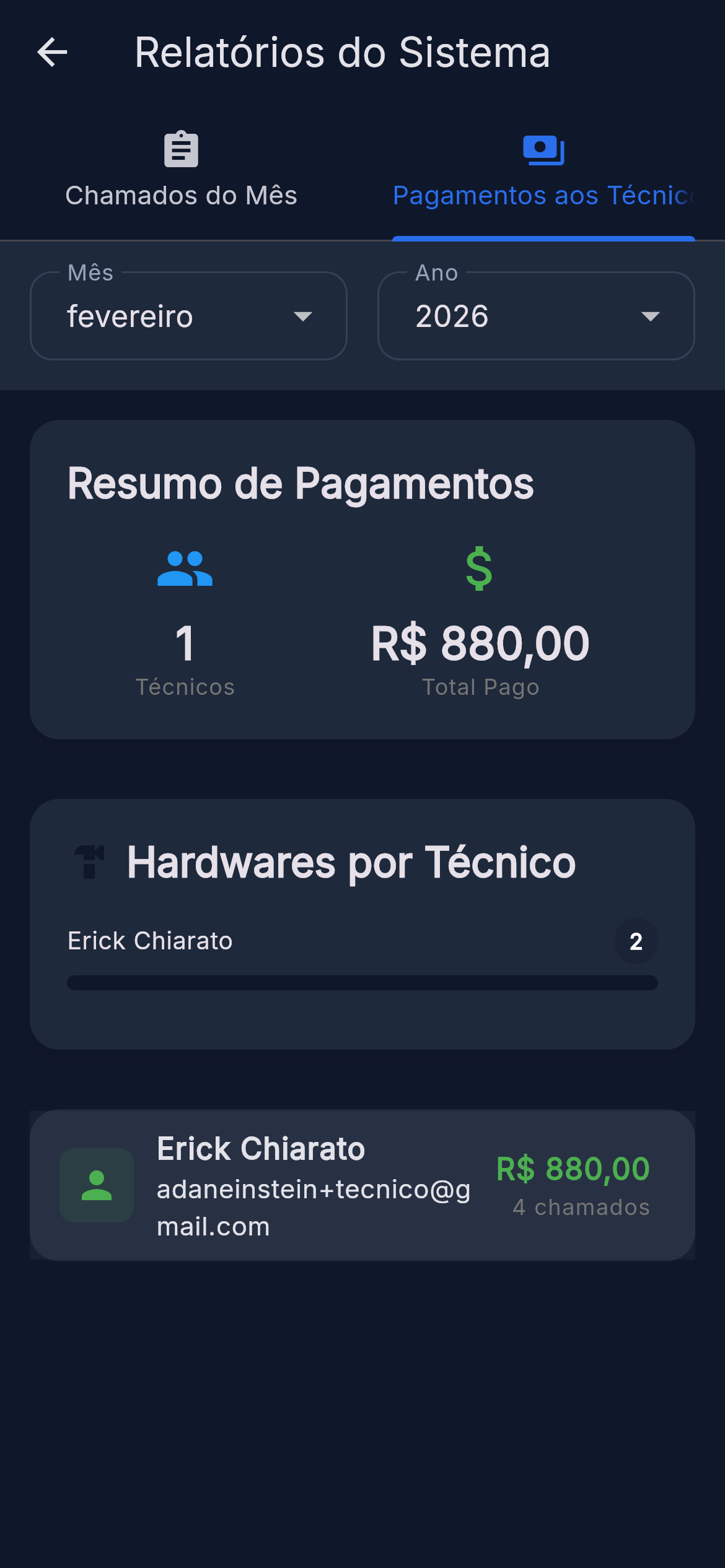 - Gestão Financeira: Controle de pagamentos para técnicos.