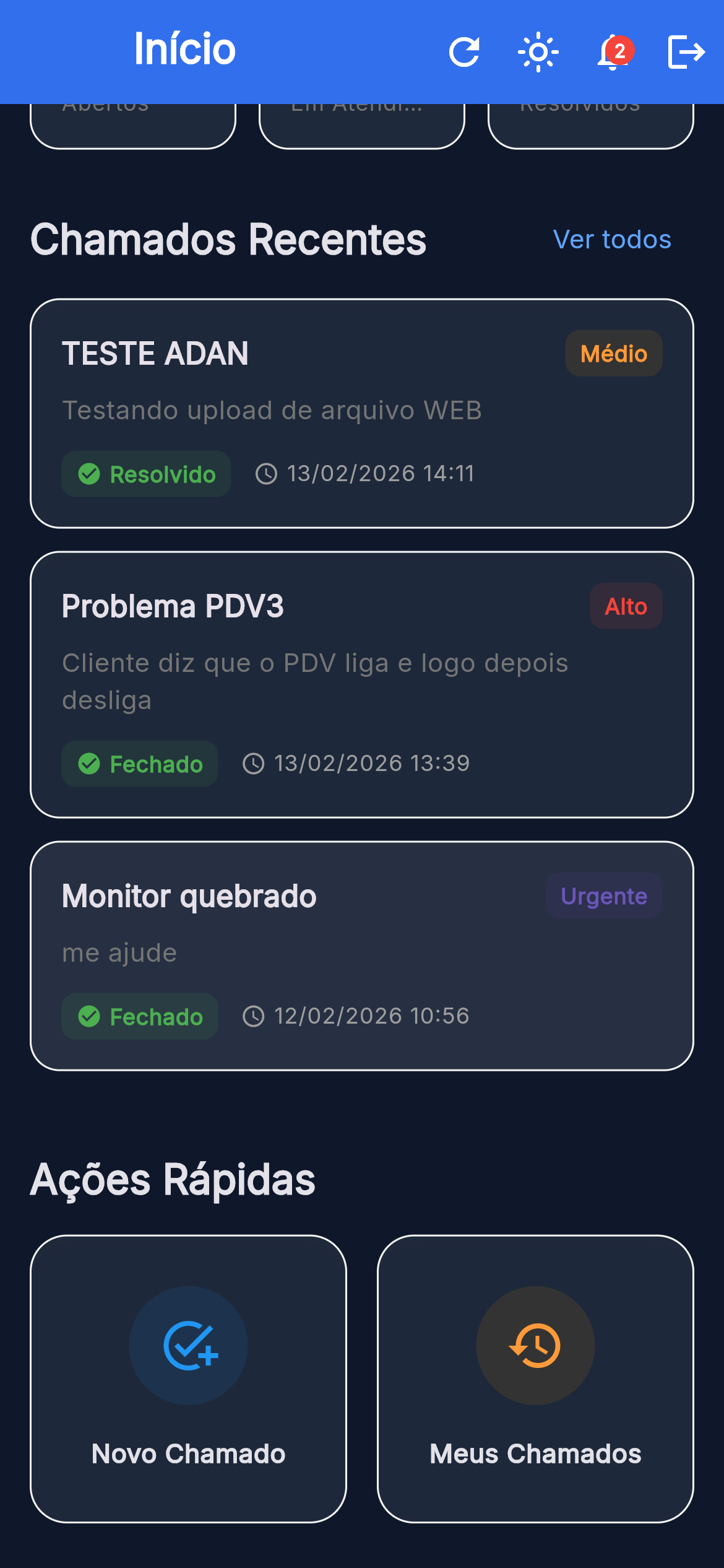 - Notificações em Tempo Real: Usuários recebem notificações sobre atualizações nos chamados.